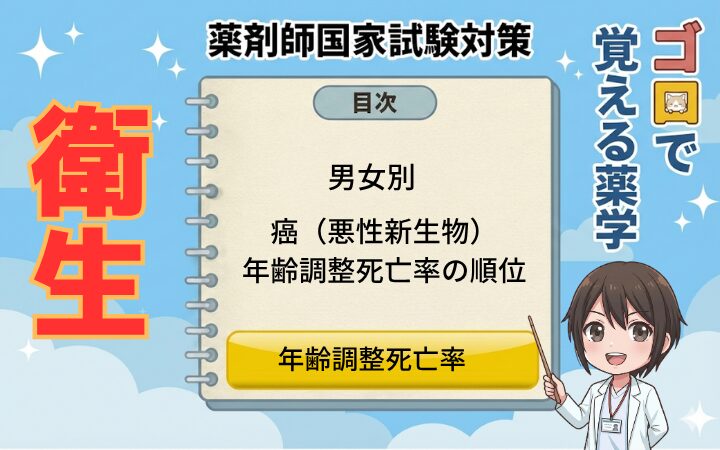 【薬剤師国家試験】がん(悪性新生物)年齢調整死亡率の順番・最強の覚え方【男女別ゴロ】(ゴロで覚える薬学)
