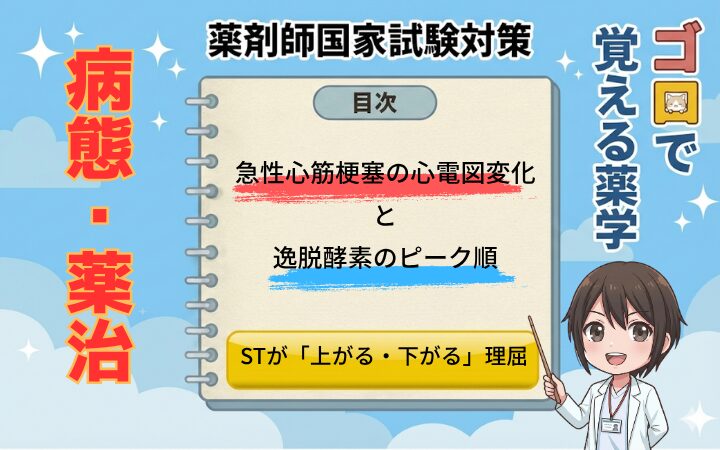 【薬剤師国家試験】急性心筋梗塞の心電図変化と逸脱酵素のピーク順をゴロで完璧に覚える!(ゴロで覚える薬学)