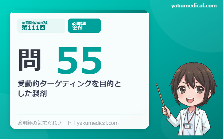 【第111回薬剤師国家試験】問55 受動的ターゲティングを目的とした製剤 解説
