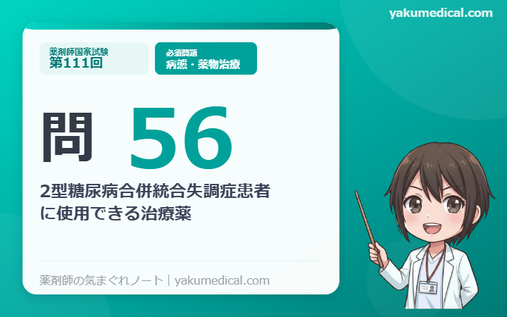 【第111回薬剤師国家試験】問56 2型糖尿病合併統合失調症患者に使用できる治療薬 解説