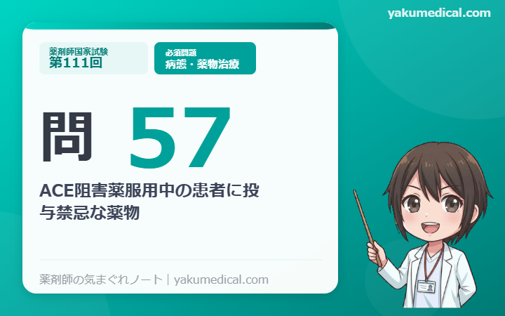 【第111回薬剤師国家試験】問57 ACE阻害薬服用中の患者に投与禁忌な薬物 解説
