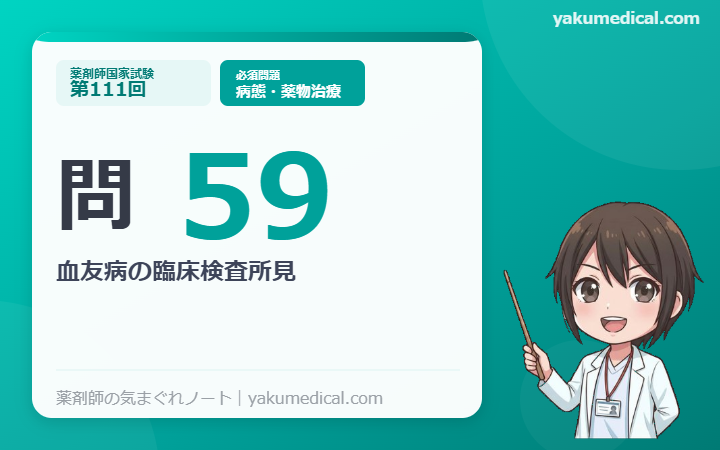 【第111回薬剤師国家試験】問59 血友病の臨床検査所見 解説