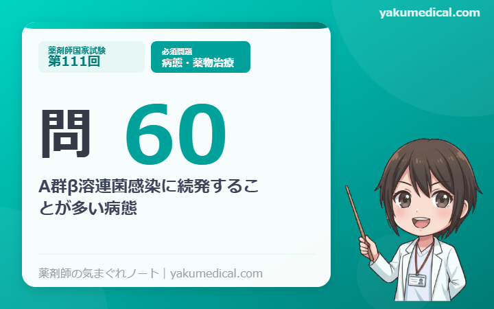 【第111回薬剤師国家試験】問60 A群β溶連菌感染に続発することが多い病態 解説