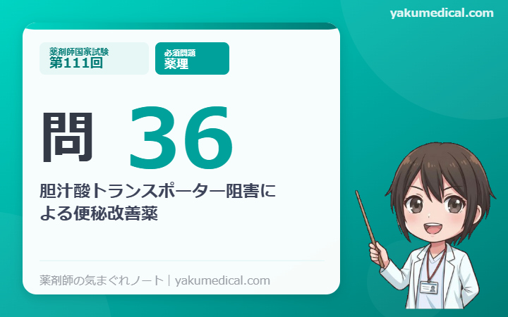 【第111回薬剤師国家試験】問36 胆汁酸トランスポーター阻害による便秘改善薬 解説