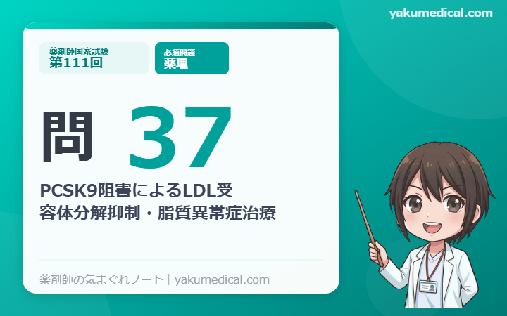【第111回薬剤師国家試験】問37 PCSK9阻害によるLDL受容体分解抑制・脂質異常症治療薬 解説