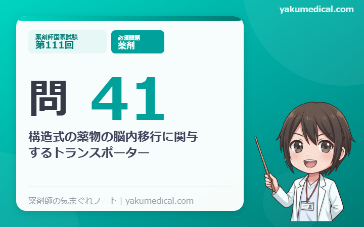 【第111回薬剤師国家試験】問41 構造式の薬物の脳内移行に関与するトランスポーター 解説