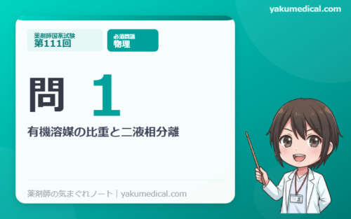 また、国試では「水より重い有機溶媒=ハロゲン化炭化水素」というセットで頻出です。CCl₄(四塩化炭素)も同じ理由で下層になるので、一緒に覚えておきましょう!