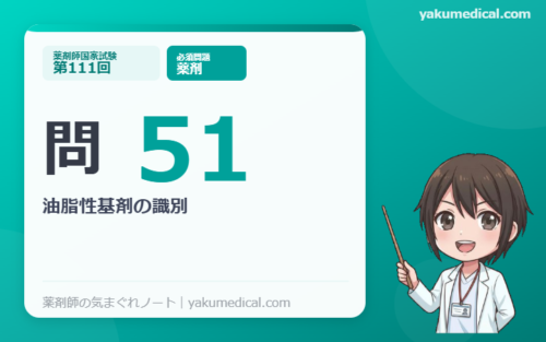 ・親水ワセリン(選択肢5)は「ワセリン」という名がついているが、界面活性剤を配合してO/W型乳剤性基剤にしたもの。純粋な油脂性基剤ではない
