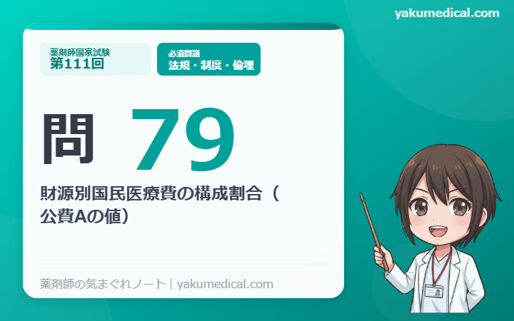 ・選択肢2(10%)は患者負担等(C)に近い値。A・B・Cを取り違えないよう、「公費≒4割・保険料≒5割・患者負担≒1割」という大枠を押さえること